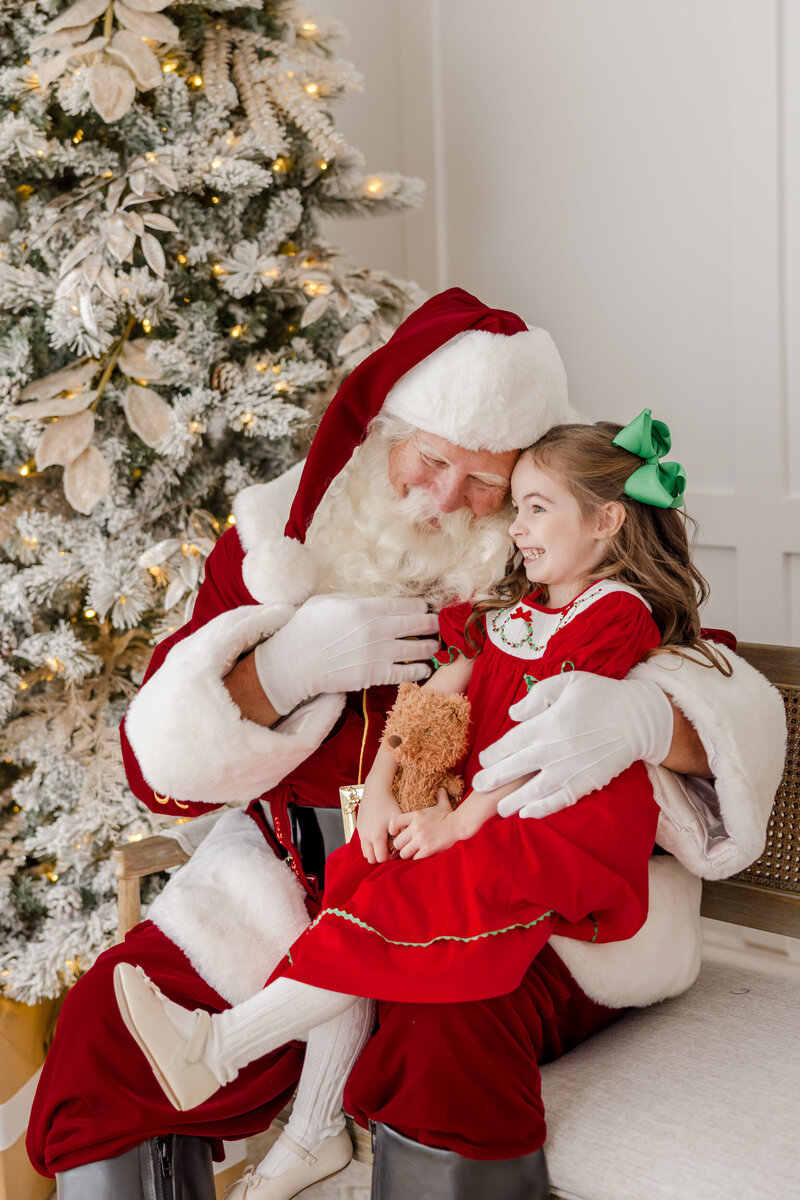 Looking for Greenville Santa Photos? Enjoy the magic of Santa on a beautiful white Christmas set with timeless photos at a private studio in downtown Greer, South Carolina.